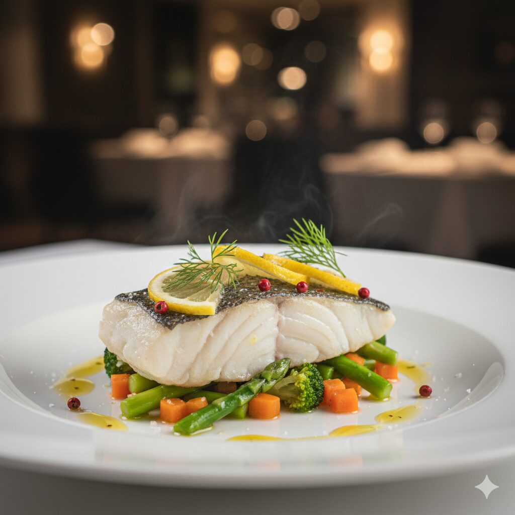 Uma celebração da simplicidade sofisticada. Este prato apresenta filetes delicados de garoupa fresca, selecionada pela sua textura firme e sabor suave